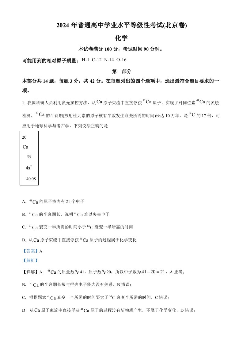 当前位置: 首页高中资源高考真题正文 2024年高考化学试卷(北京)(含答案)_共22页 高考真题 2 周前 0 0 15 以上为部分内容预览,如需源文档请登录您的会员账号进行下载! 声明:本站所有文章,如无特殊说明或标注,均为本站原创发布。任何个人或组织,在未征得本站同意时,禁止复制、盗用、采集、发布本站内容到任何网站、书籍等各类媒体平台。如若本站内容侵犯了原著者的合法权益,可联系我们进行处理。 尚学资源永久会员 打赏 收藏 海报 链接