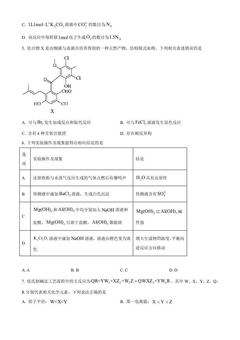 2024年高考化学试卷(河北)(空白卷)_共10页