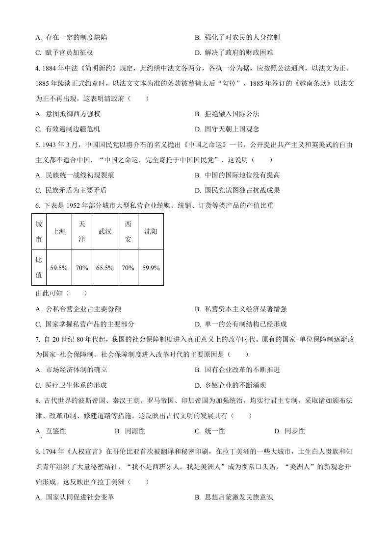 2024年高考历史试卷(广东)(空白卷)_共4页