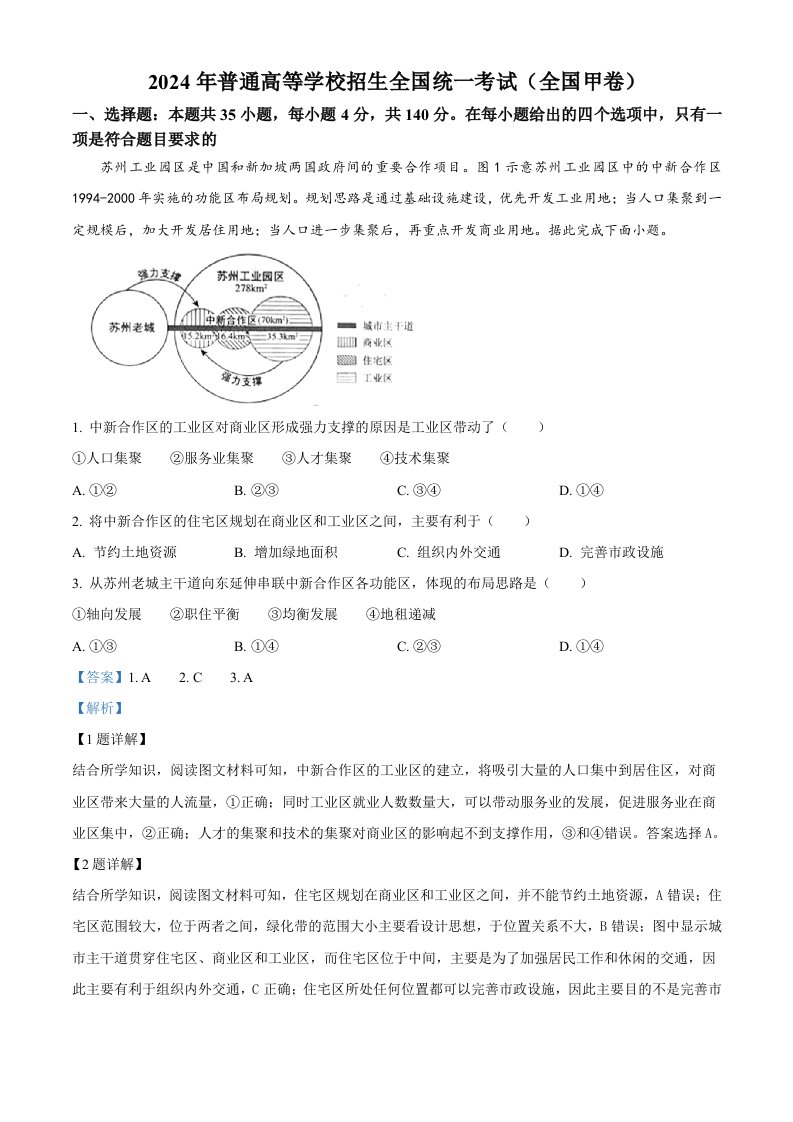 2024年高考地理试卷(全国甲卷)(含答案)_共12页