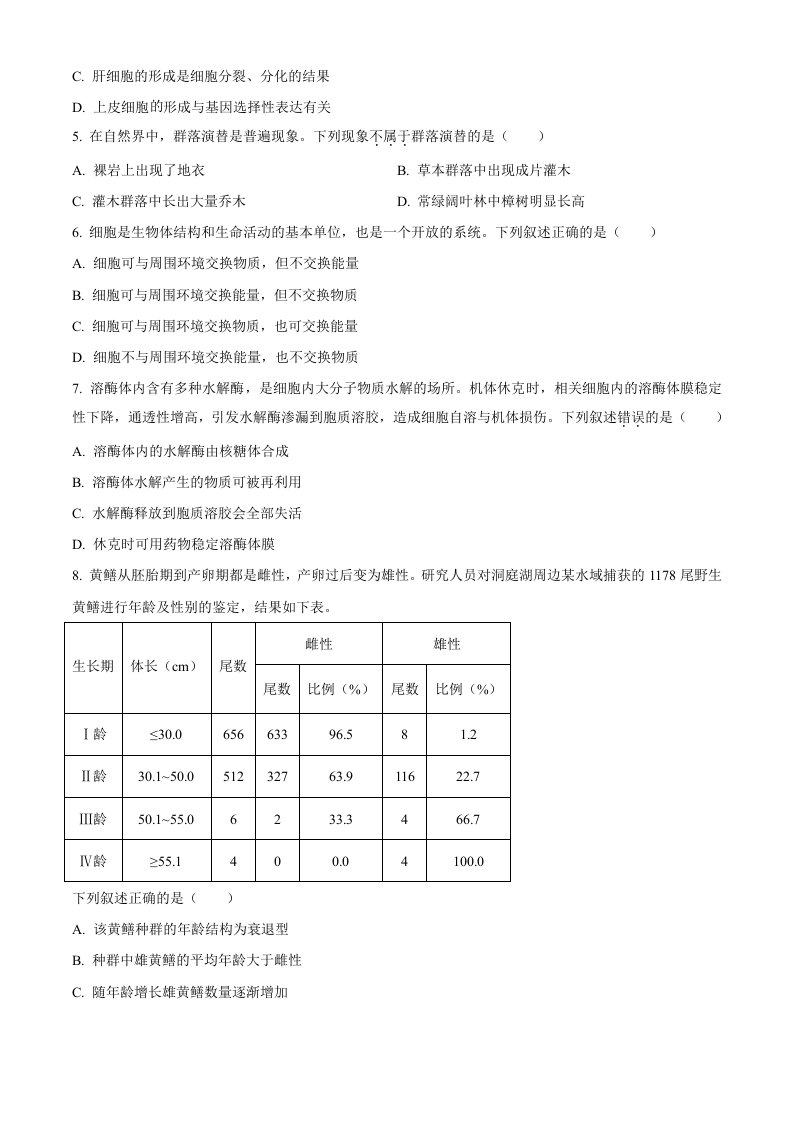 2024年高考生物试卷(浙江)(6月)(空白卷)_共10页