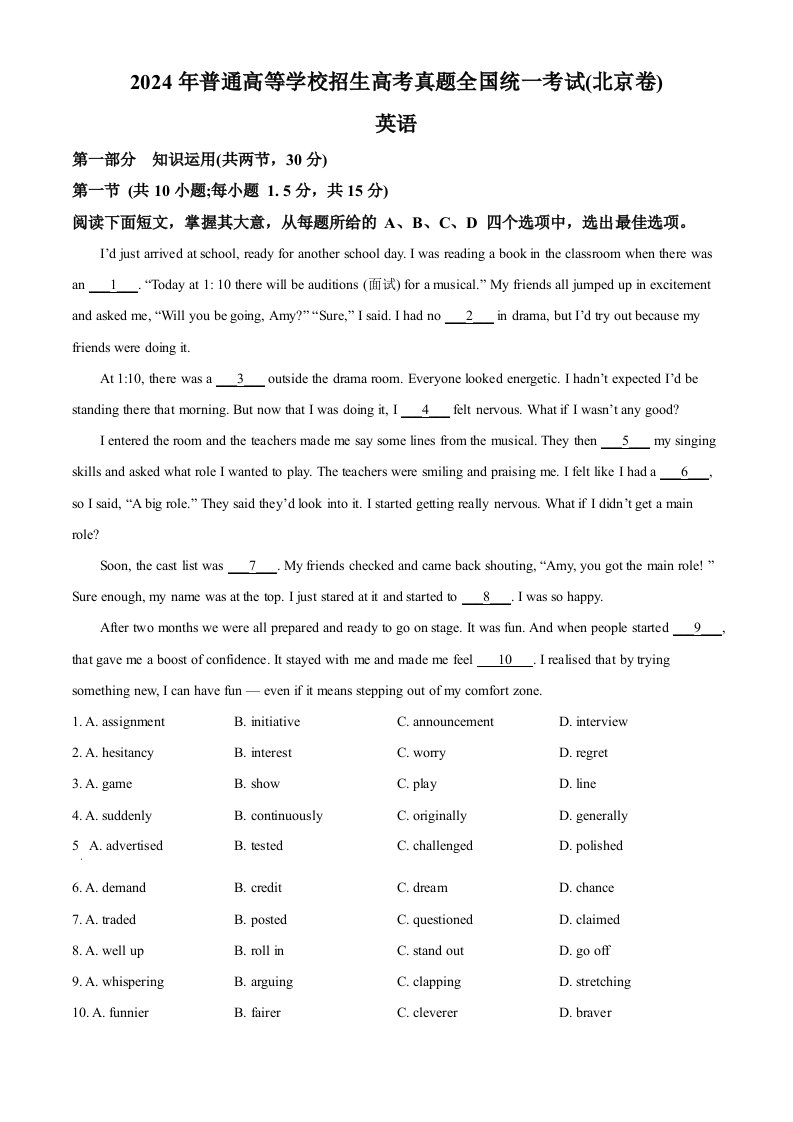 当前位置: 首页高中资源高考真题正文 2024年高考英语试卷(北京)(机考无听力)(空白卷)_共9页 高考真题 2 周前 0 0 5 以上为部分内容预览,如需源文档请登录您的会员账号进行下载! 声明:本站所有文章,如无特殊说明或标注,均为本站原创发布。任何个人或组织,在未征得本站同意时,禁止复制、盗用、采集、发布本站内容到任何网站、书籍等各类媒体平台。如若本站内容侵犯了原著者的合法权益,可联系我们进行处理。 尚学资源永久会员 打赏 收藏 海报 链接
