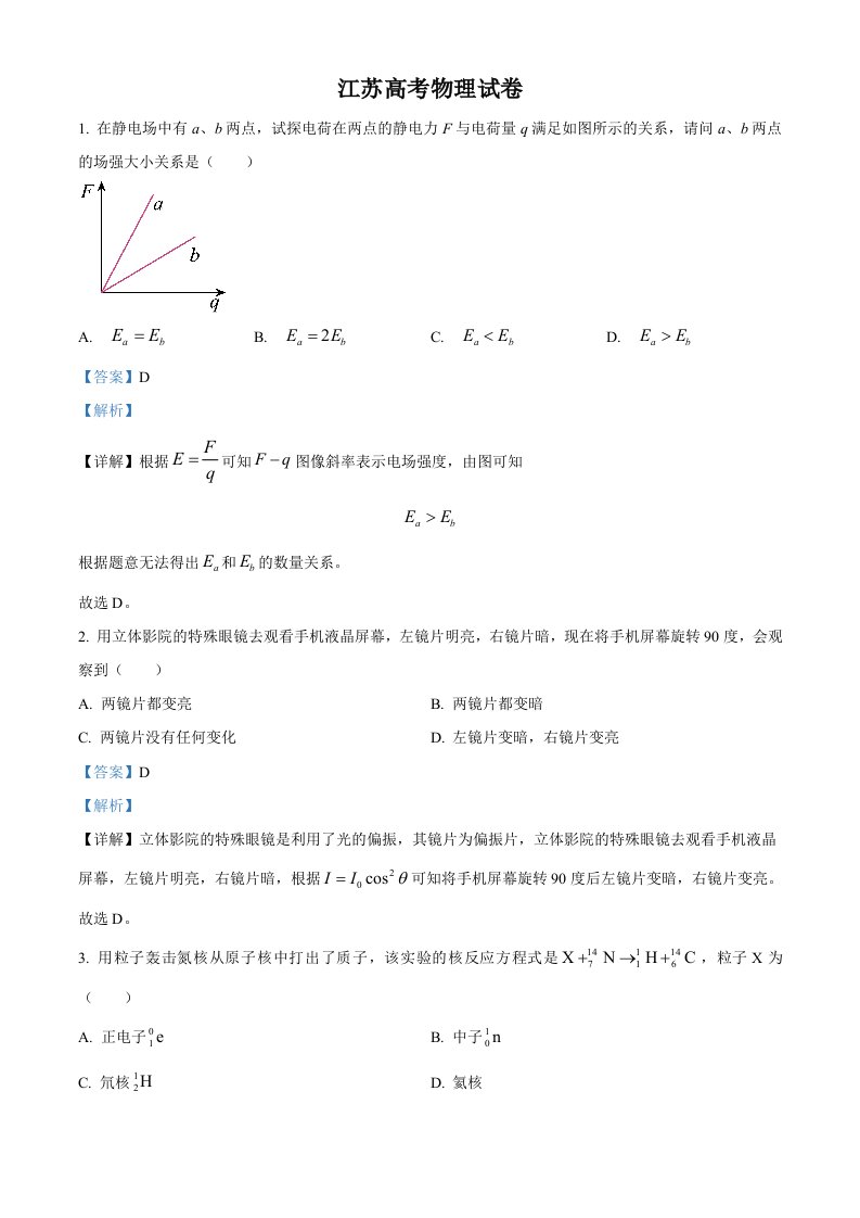 当前位置: 首页高中资源高考真题正文 2024年高考物理试卷(江苏)(回忆版)(含答案)缺第8题、第16题_共9页 高考真题 2 周前 0 0 5 以上为部分内容预览,如需源文档请登录您的会员账号进行下载! 声明:本站所有文章,如无特殊说明或标注,均为本站原创发布。任何个人或组织,在未征得本站同意时,禁止复制、盗用、采集、发布本站内容到任何网站、书籍等各类媒体平台。如若本站内容侵犯了原著者的合法权益,可联系我们进行处理。 尚学资源永久会员 打赏 收藏 海报 链接