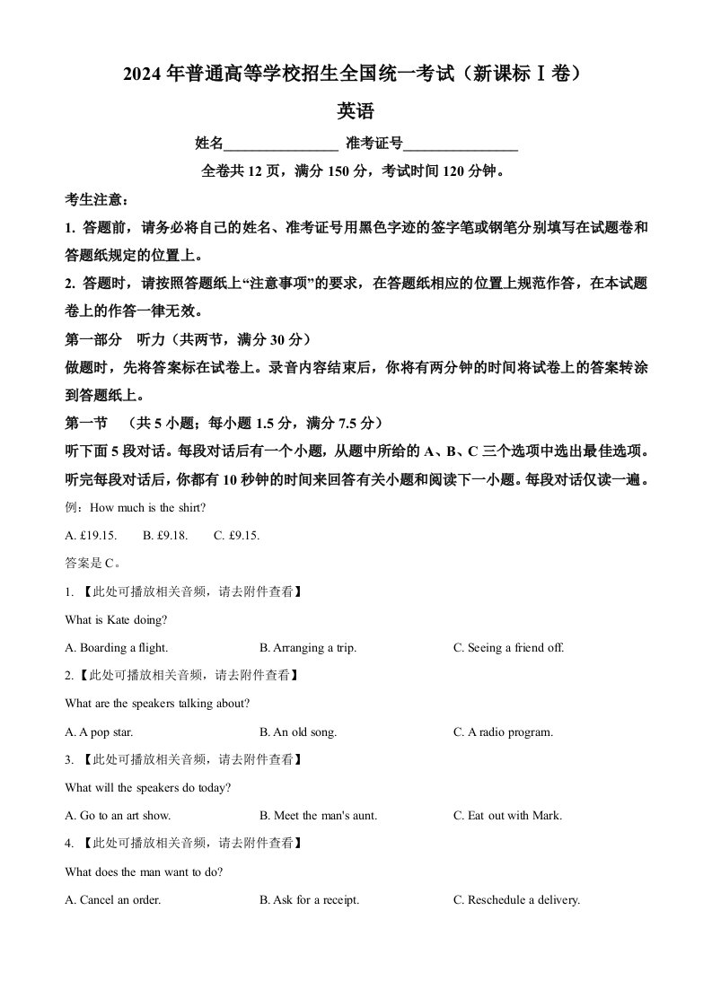 当前位置: 首页高中资源高考真题正文 2024年高考英语试卷(新课标Ⅰ卷)(空白卷)_共12页 高考真题 2 周前 0 0 10 以上为部分内容预览,如需源文档请登录您的会员账号进行下载! 声明:本站所有文章,如无特殊说明或标注,均为本站原创发布。任何个人或组织,在未征得本站同意时,禁止复制、盗用、采集、发布本站内容到任何网站、书籍等各类媒体平台。如若本站内容侵犯了原著者的合法权益,可联系我们进行处理。 尚学资源永久会员 打赏 收藏 海报 链接