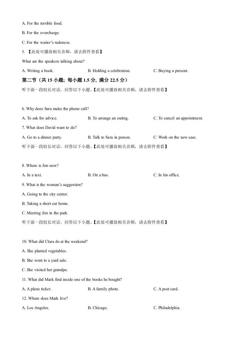 当前位置: 首页高中资源高考真题正文 2023年高考英语试卷(新课标Ⅰ卷)(空白卷)_共13页 高考真题 2 周前 0 0 10 以上为部分内容预览,如需源文档请登录您的会员账号进行下载! 声明:本站所有文章,如无特殊说明或标注,均为本站原创发布。任何个人或组织,在未征得本站同意时,禁止复制、盗用、采集、发布本站内容到任何网站、书籍等各类媒体平台。如若本站内容侵犯了原著者的合法权益,可联系我们进行处理。 尚学资源永久会员 打赏 收藏 海报 链接