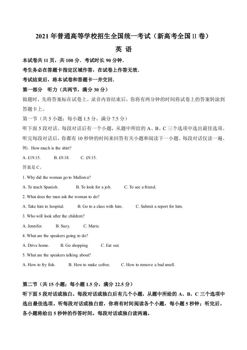 当前位置: 首页高中资源高考真题正文 2021年高考英语试卷(新高考Ⅱ卷)(含答案)_共27页 高考真题 2 周前 0 0 15 以上为部分内容预览,如需源文档请登录您的会员账号进行下载! 声明:本站所有文章,如无特殊说明或标注,均为本站原创发布。任何个人或组织,在未征得本站同意时,禁止复制、盗用、采集、发布本站内容到任何网站、书籍等各类媒体平台。如若本站内容侵犯了原著者的合法权益,可联系我们进行处理。 尚学资源永久会员 打赏 收藏 海报 链接