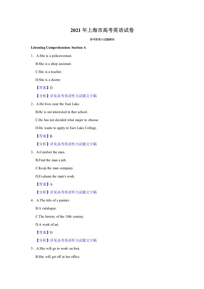 2021年高考英语试卷(上海)(秋考)(含答案)_共32页