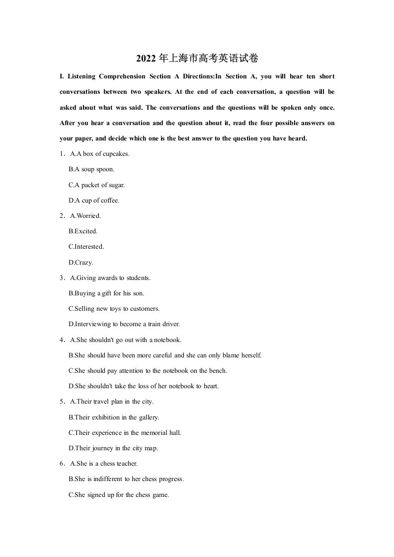 当前位置: 首页高中资源高考真题正文 2022年高考英语试卷(上海)(秋考)(空白卷)_共18页 高考真题 2 周前 0 0 10 以上为部分内容预览,如需源文档请登录您的会员账号进行下载! 声明:本站所有文章,如无特殊说明或标注,均为本站原创发布。任何个人或组织,在未征得本站同意时,禁止复制、盗用、采集、发布本站内容到任何网站、书籍等各类媒体平台。如若本站内容侵犯了原著者的合法权益,可联系我们进行处理。 尚学资源永久会员 打赏 收藏 海报 链接