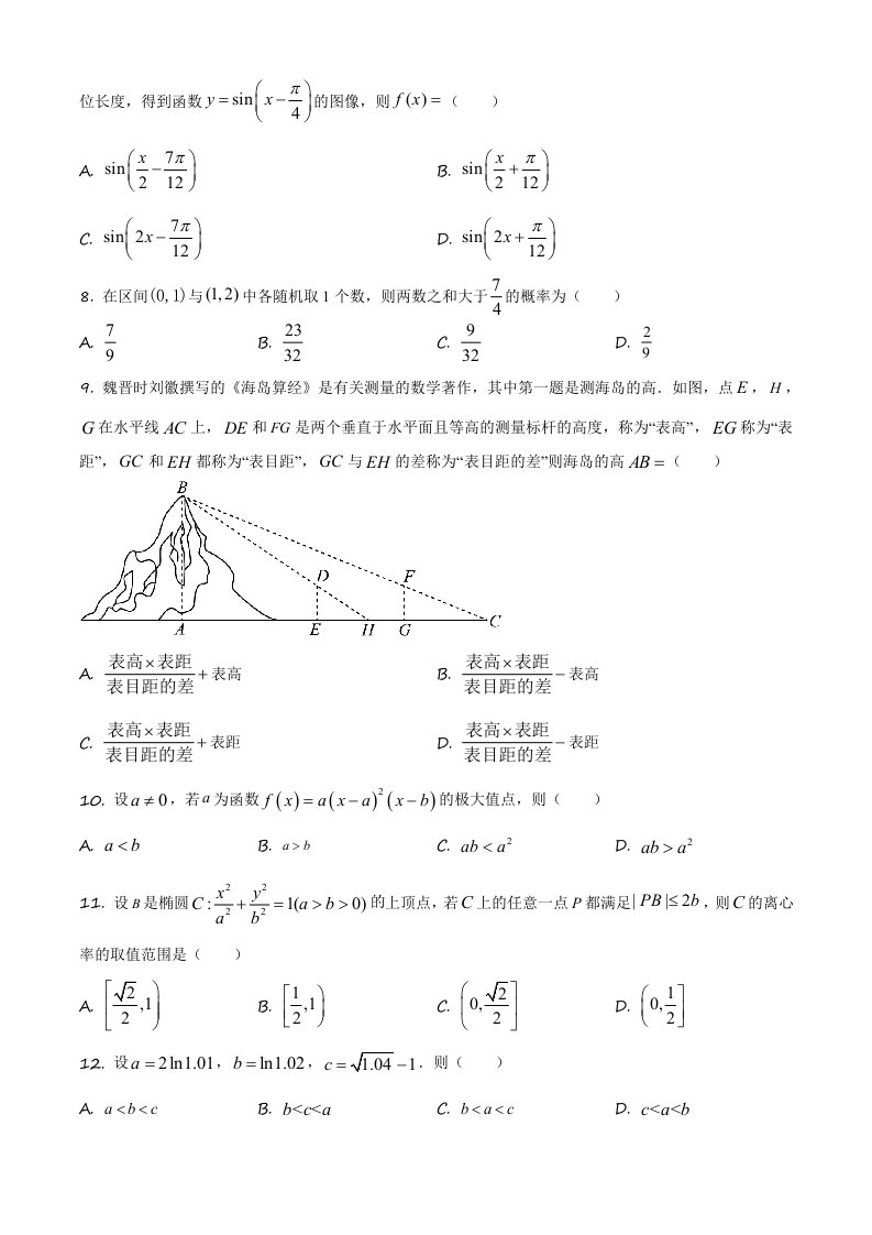 2021年高考数学试卷(理)(全国乙卷)(空白卷)_共5页