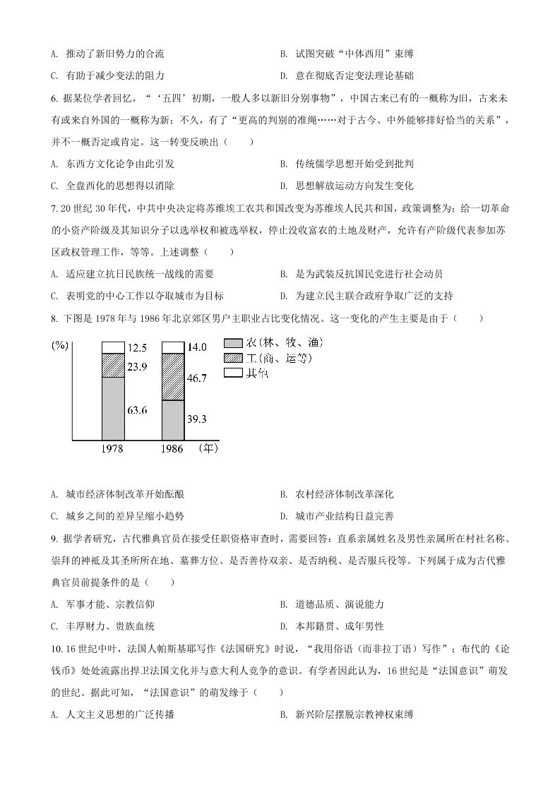2022年高考历史试卷(全国乙卷)(空白卷)_共6页