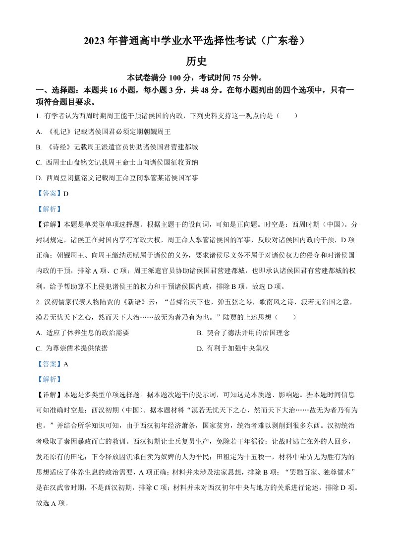 当前位置: 首页高中资源高考真题正文 2023年高考历史试卷(广东)(含答案)_共14页 高考真题 2 周前 0 0 10 以上为部分内容预览,如需源文档请登录您的会员账号进行下载! 声明:本站所有文章,如无特殊说明或标注,均为本站原创发布。任何个人或组织,在未征得本站同意时,禁止复制、盗用、采集、发布本站内容到任何网站、书籍等各类媒体平台。如若本站内容侵犯了原著者的合法权益,可联系我们进行处理。 尚学资源永久会员 打赏 收藏 海报 链接