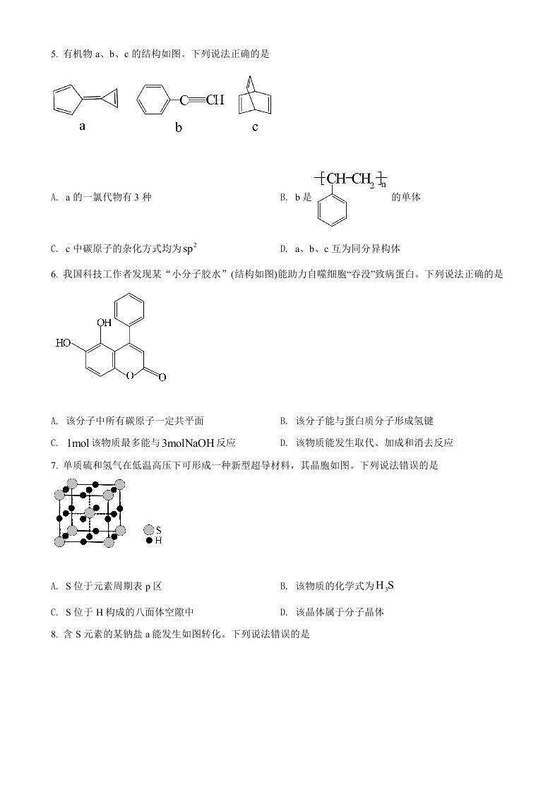 2021年高考化学试卷(辽宁)(空白卷)_共12页