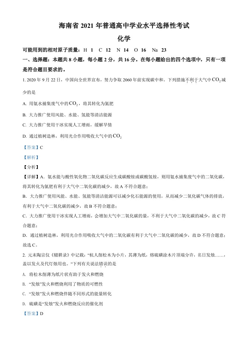当前位置: 首页高中资源高考真题正文 2021年高考化学试卷(海南)(含答案)_共21页 高考真题 2 周前 0 0 15 以上为部分内容预览,如需源文档请登录您的会员账号进行下载! 声明:本站所有文章,如无特殊说明或标注,均为本站原创发布。任何个人或组织,在未征得本站同意时,禁止复制、盗用、采集、发布本站内容到任何网站、书籍等各类媒体平台。如若本站内容侵犯了原著者的合法权益,可联系我们进行处理。 尚学资源永久会员 打赏 收藏 海报 链接