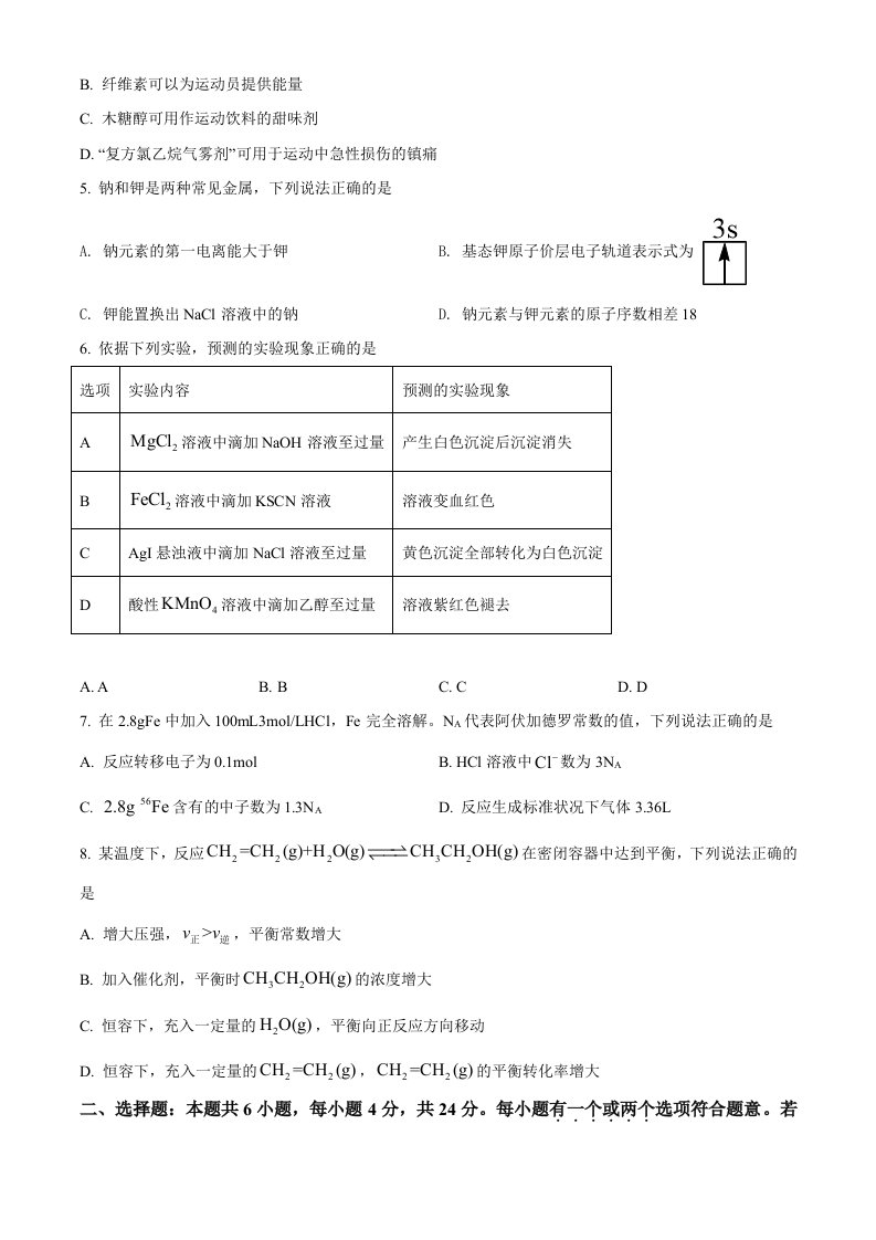 2022年高考化学试卷(海南)(空白卷)_共10页