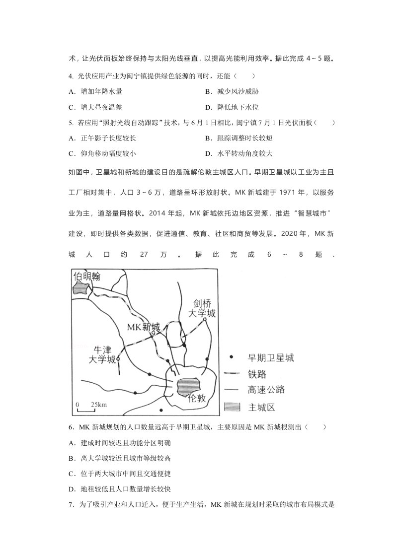 2021年高考地理试卷(福建)(空白卷)_共9页