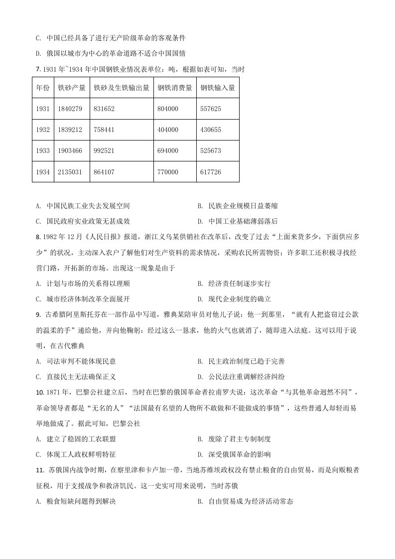 2021年高考历史试卷(全国甲卷)(空白卷)_共5页