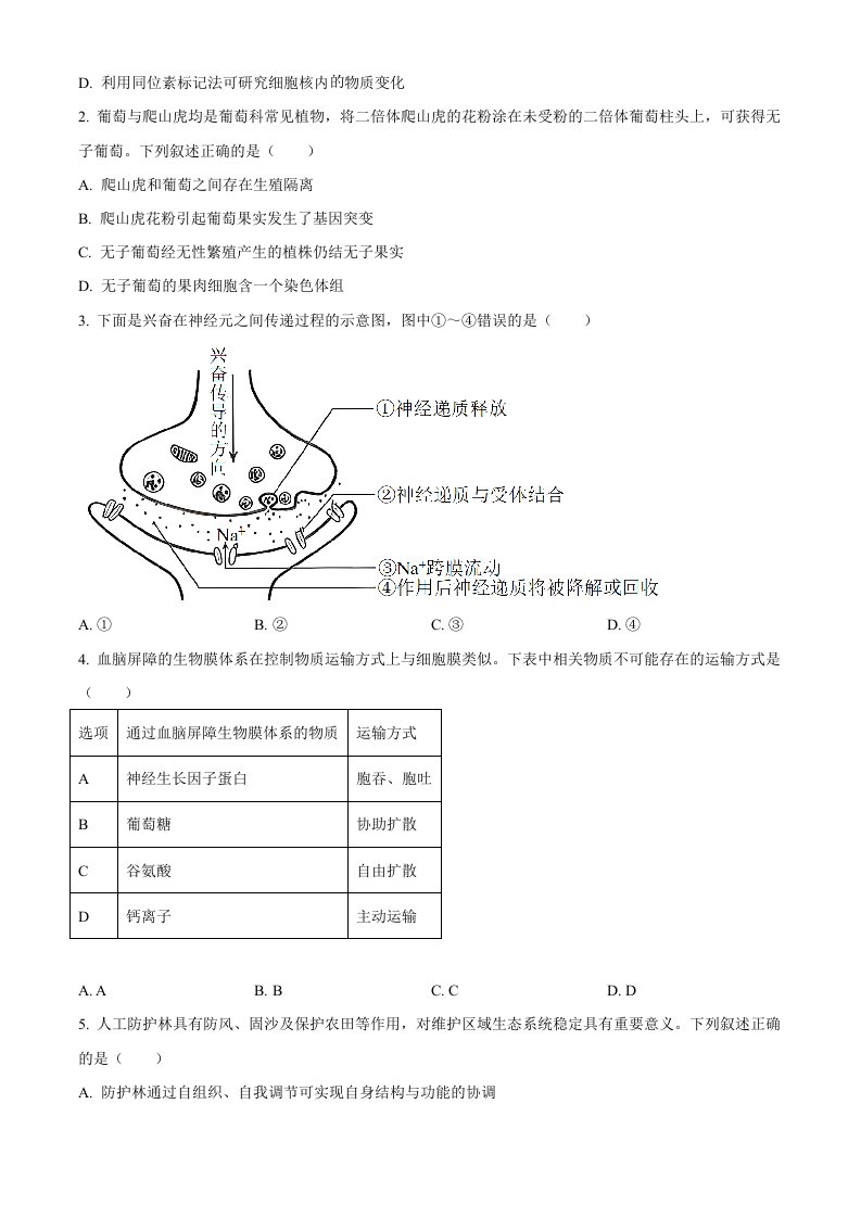 2023年高考生物试卷(辽宁)(空白卷)_共12页