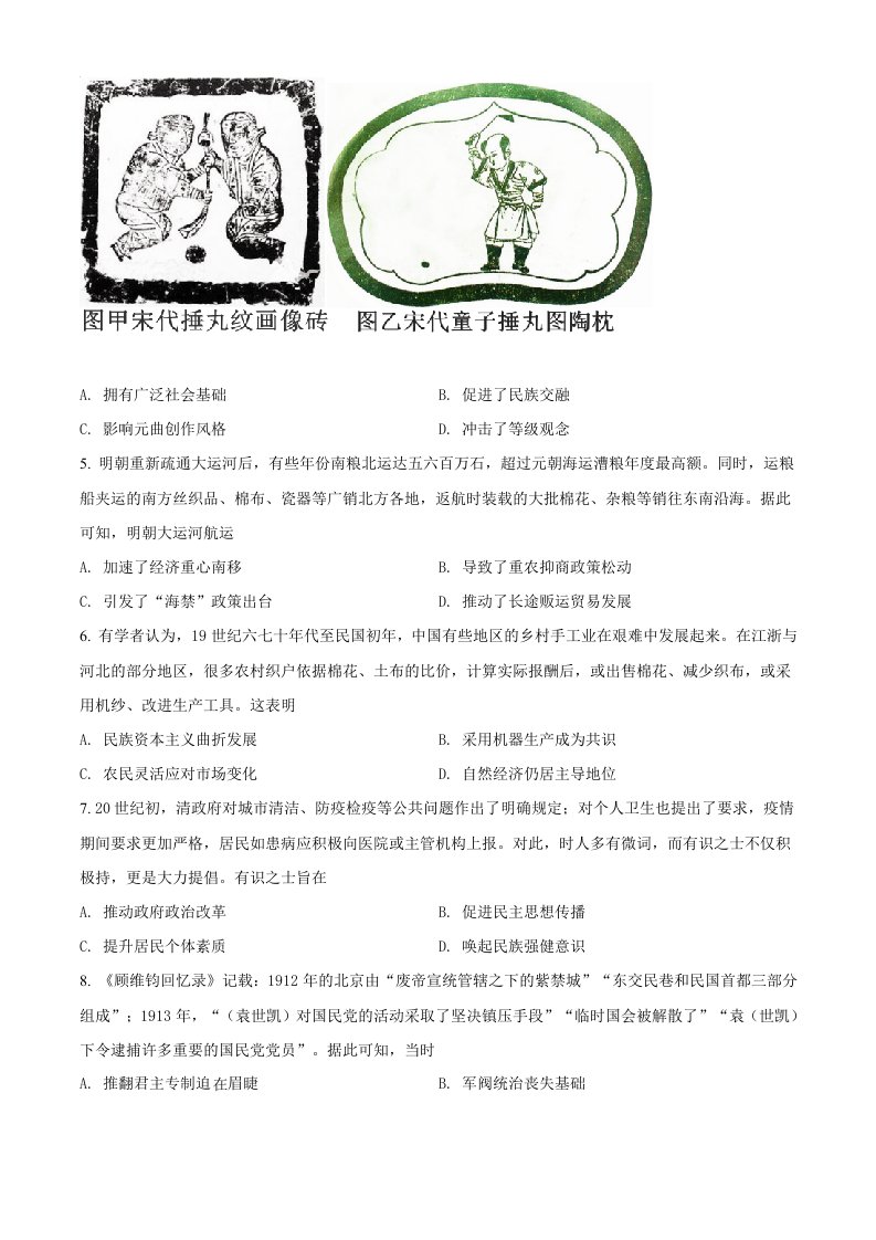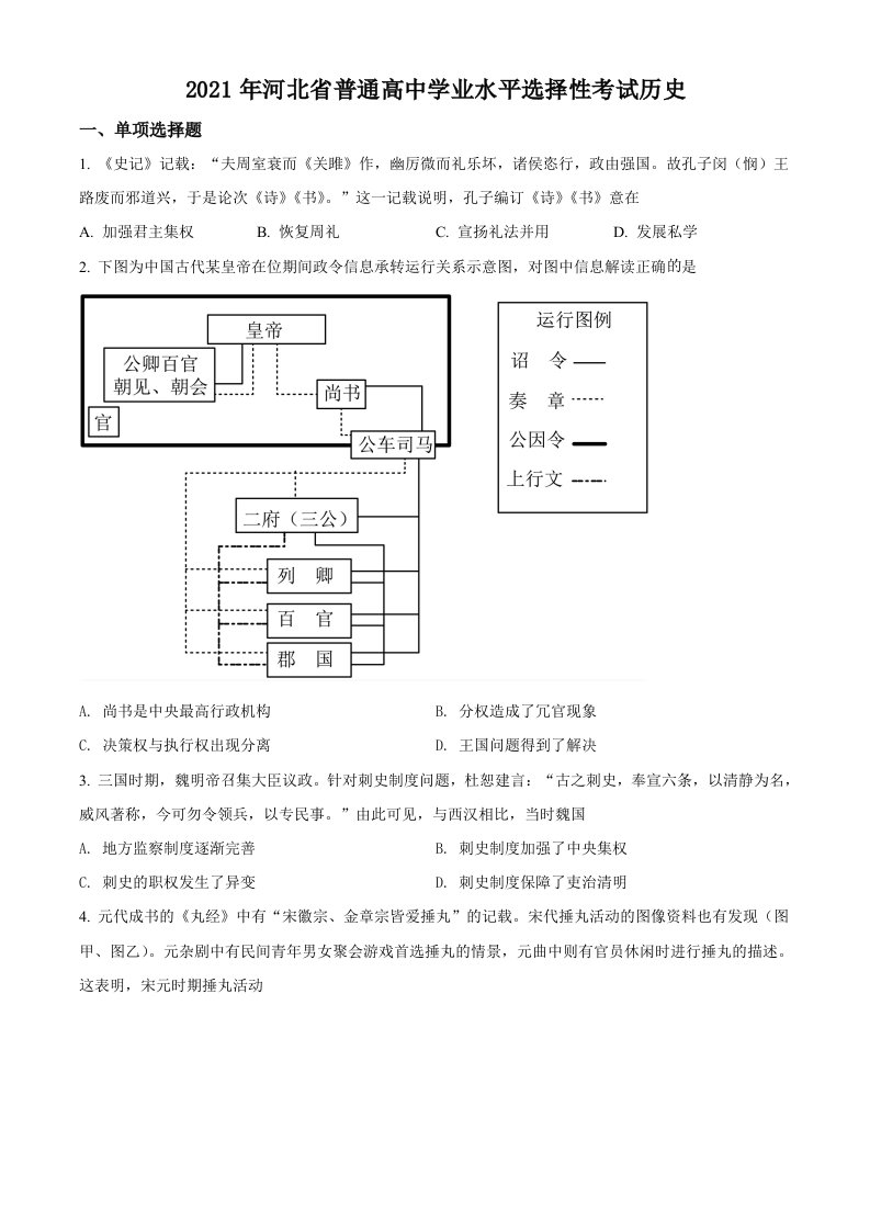 2021年高考历史试卷(河北)(空白卷)_共7页
