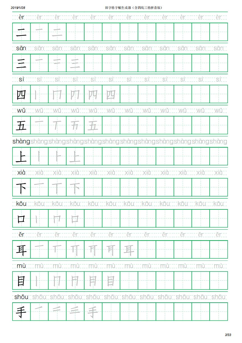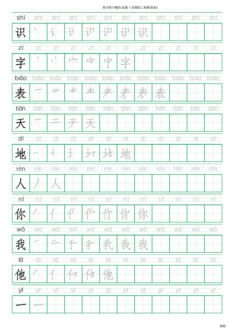一年级语文上册写字表(含拼音、笔顺)(33页)PDF(部编版)_共33页