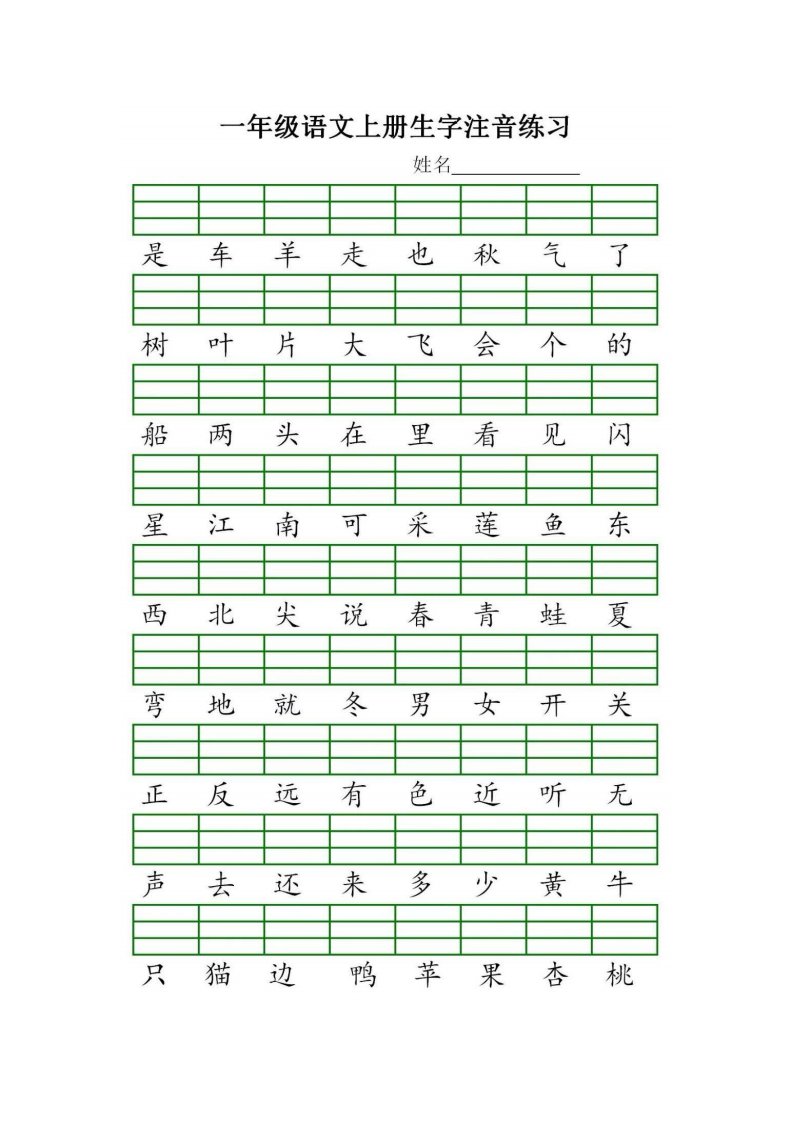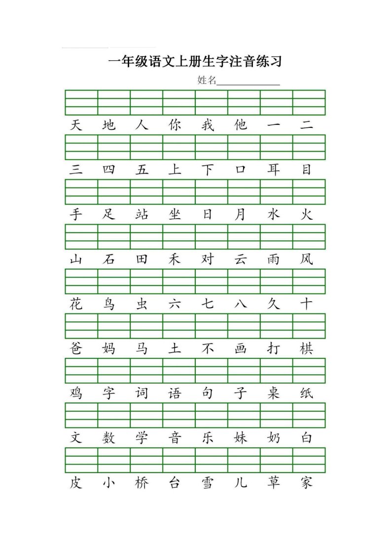 一年级语文上册统编生字注音练习(部编版)_共5页