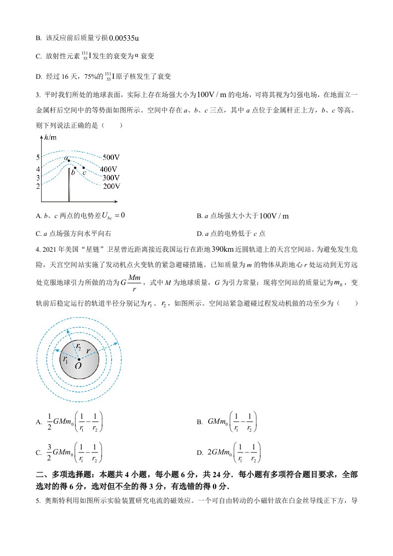 2022年高考物理试卷(福建)(空白卷)_共9页