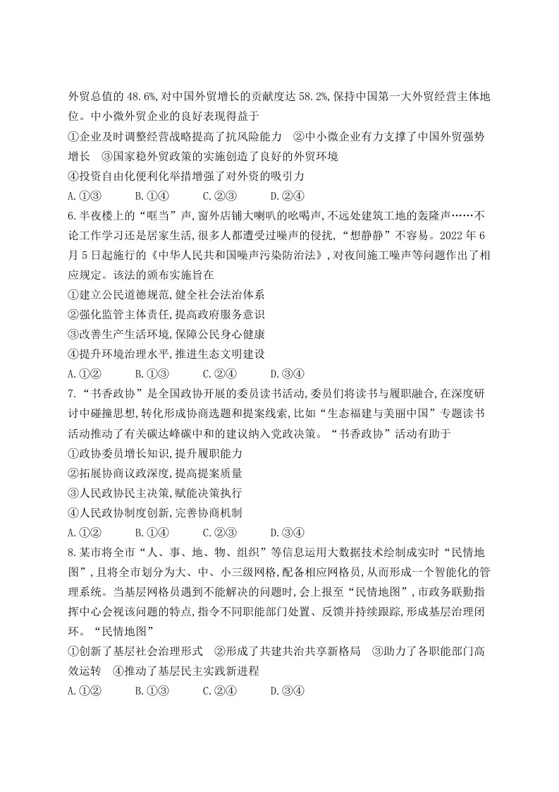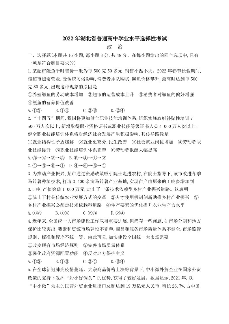 2022年高考政治试卷(湖北)(空白卷)_共7页