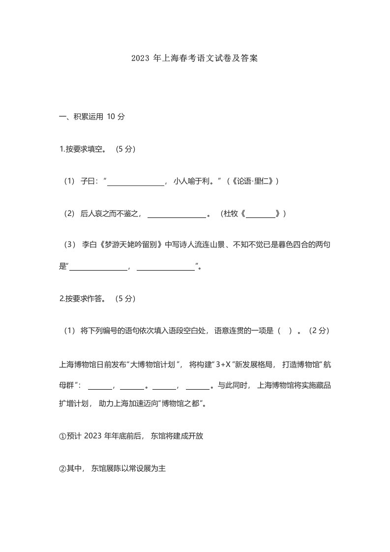 当前位置: 首页高中资源高考真题正文 2023年高考语文试卷(上海)(春考)(含答案)_共23页 高考真题 2 周前 0 0 15 以上为部分内容预览,如需源文档请登录您的会员账号进行下载! 声明:本站所有文章,如无特殊说明或标注,均为本站原创发布。任何个人或组织,在未征得本站同意时,禁止复制、盗用、采集、发布本站内容到任何网站、书籍等各类媒体平台。如若本站内容侵犯了原著者的合法权益,可联系我们进行处理。 尚学资源永久会员 打赏 收藏 海报 链接