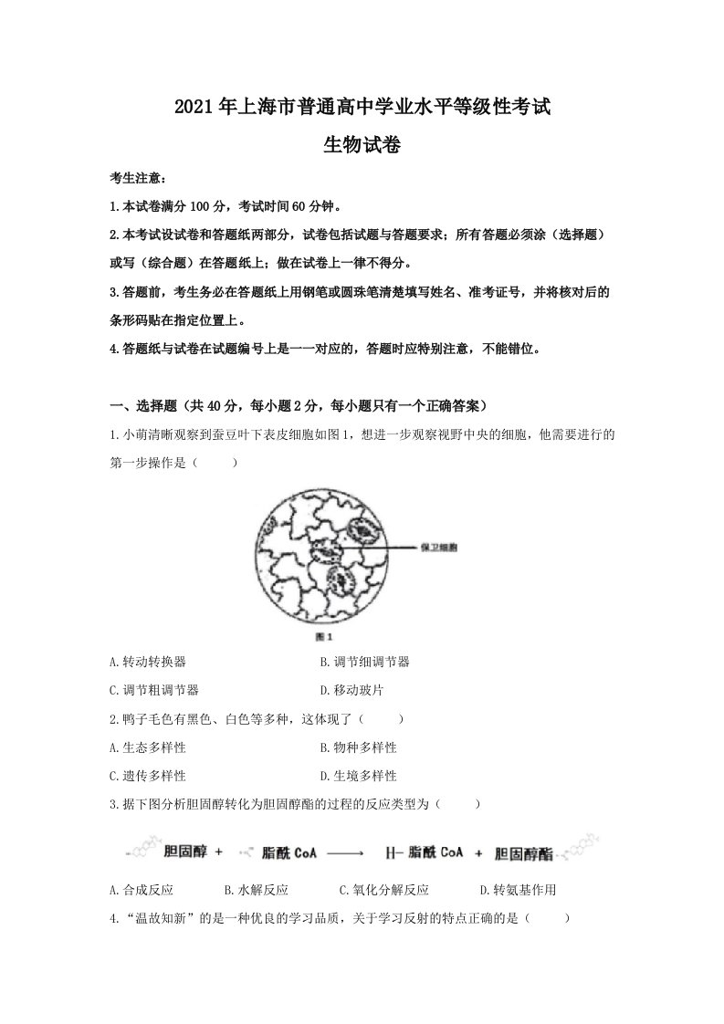 2021年高考生物试卷(上海)(答案卷)_共10页