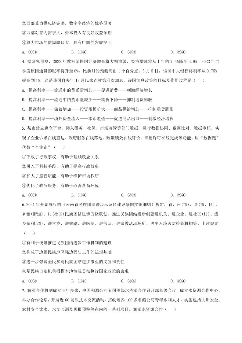 2022年高考政治试卷(全国甲卷)(空白卷)_共7页