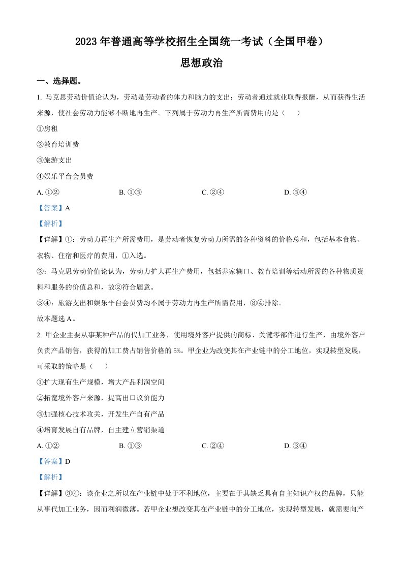 当前位置: 首页高中资源高考真题正文 2023年高考政治试卷(全国甲卷)(含答案)_共13页 高考真题 2 周前 0 0 10 以上为部分内容预览,如需源文档请登录您的会员账号进行下载! 声明:本站所有文章,如无特殊说明或标注,均为本站原创发布。任何个人或组织,在未征得本站同意时,禁止复制、盗用、采集、发布本站内容到任何网站、书籍等各类媒体平台。如若本站内容侵犯了原著者的合法权益,可联系我们进行处理。 尚学资源永久会员 打赏 收藏 海报 链接