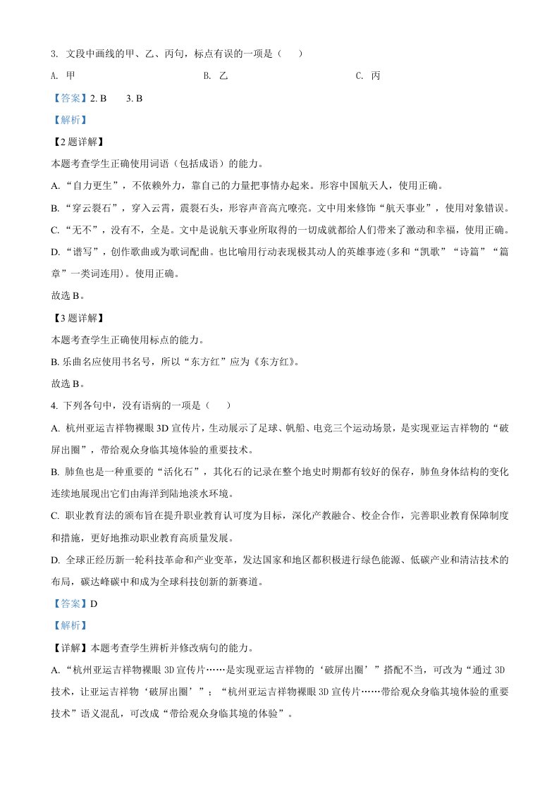 2022年高考语文试卷(浙江)(含答案)_共24页