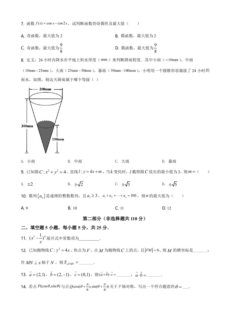 2021年高考数学试卷(北京)(空白卷)_共4页
