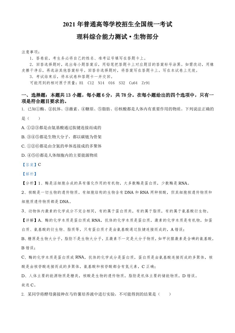 当前位置: 首页高中资源高考真题正文 2021年高考生物试卷(全国甲卷)(含答案)_共11页 高考真题 2 周前 0 0 10 以上为部分内容预览,如需源文档请登录您的会员账号进行下载! 声明:本站所有文章,如无特殊说明或标注,均为本站原创发布。任何个人或组织,在未征得本站同意时,禁止复制、盗用、采集、发布本站内容到任何网站、书籍等各类媒体平台。如若本站内容侵犯了原著者的合法权益,可联系我们进行处理。 尚学资源永久会员 打赏 收藏 海报 链接