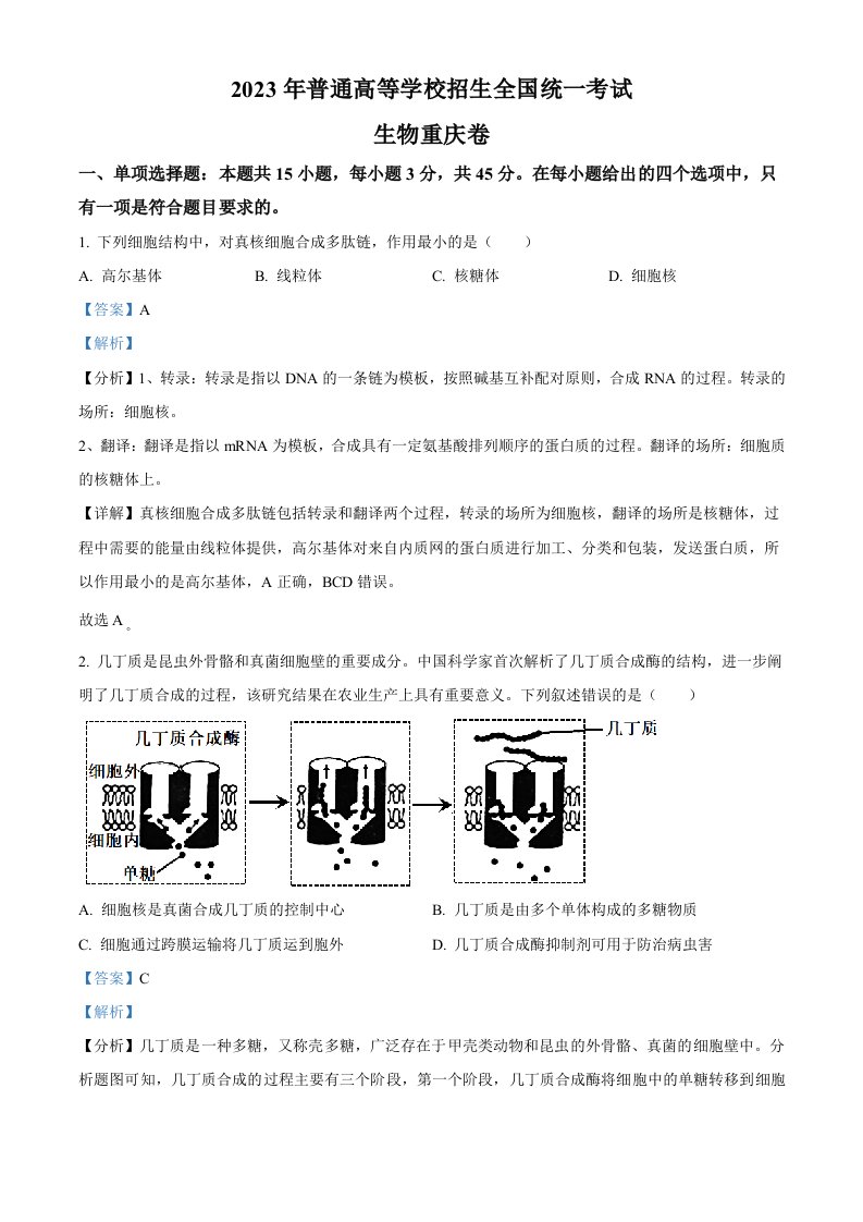 当前位置: 首页高中资源高考真题正文 2023年高考生物试卷(重庆)(含答案)_共21页 高考真题 2 周前 0 0 15 以上为部分内容预览,如需源文档请登录您的会员账号进行下载! 声明:本站所有文章,如无特殊说明或标注,均为本站原创发布。任何个人或组织,在未征得本站同意时,禁止复制、盗用、采集、发布本站内容到任何网站、书籍等各类媒体平台。如若本站内容侵犯了原著者的合法权益,可联系我们进行处理。 尚学资源永久会员 打赏 收藏 海报 链接