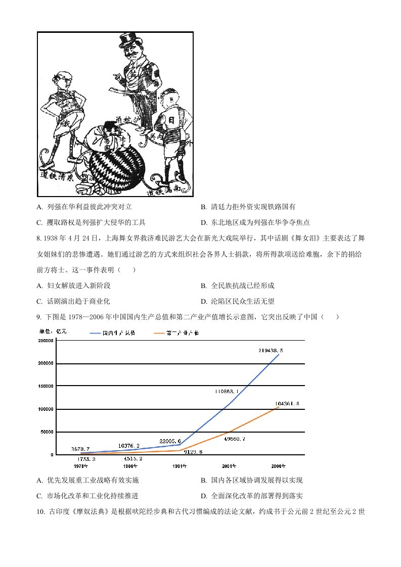 当前位置: 首页高中资源高考真题正文 2023年高考历史试卷(重庆)(含答案)_共8页 高考真题 2 周前 0 0 5 以上为部分内容预览,如需源文档请登录您的会员账号进行下载! 声明:本站所有文章,如无特殊说明或标注,均为本站原创发布。任何个人或组织,在未征得本站同意时,禁止复制、盗用、采集、发布本站内容到任何网站、书籍等各类媒体平台。如若本站内容侵犯了原著者的合法权益,可联系我们进行处理。 尚学资源永久会员 打赏 收藏 海报 链接
