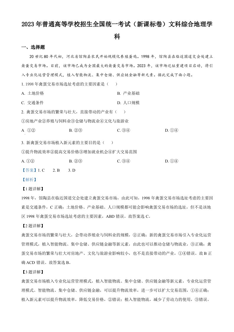 2023年高考地理试卷(新课标)(含答案)_共10页