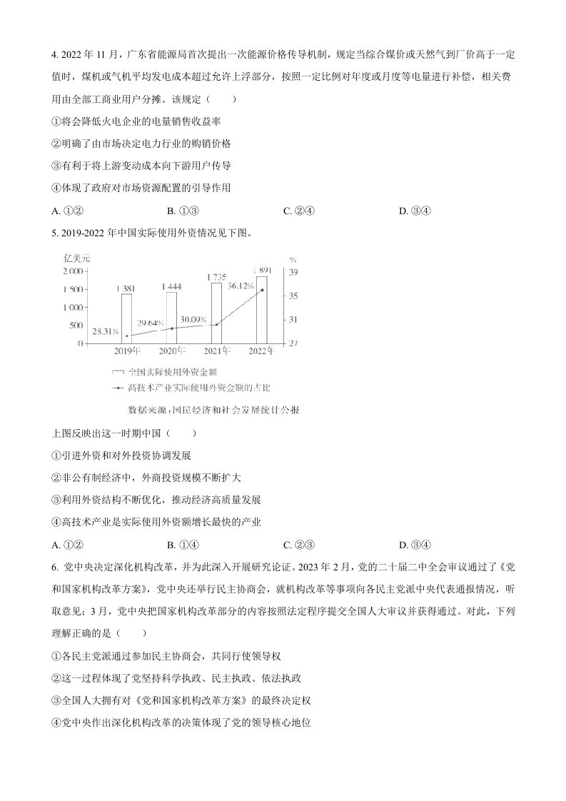 2023年高考政治试卷(广东)(空白卷)_共8页