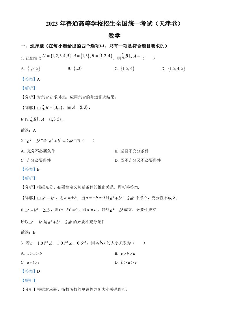 当前位置: 首页高中资源高考真题正文 2023年高考数学试卷(天津)(含答案)_共22页 高考真题 2 周前 0 0 15 以上为部分内容预览,如需源文档请登录您的会员账号进行下载! 声明:本站所有文章,如无特殊说明或标注,均为本站原创发布。任何个人或组织,在未征得本站同意时,禁止复制、盗用、采集、发布本站内容到任何网站、书籍等各类媒体平台。如若本站内容侵犯了原著者的合法权益,可联系我们进行处理。 尚学资源永久会员 打赏 收藏 海报 链接