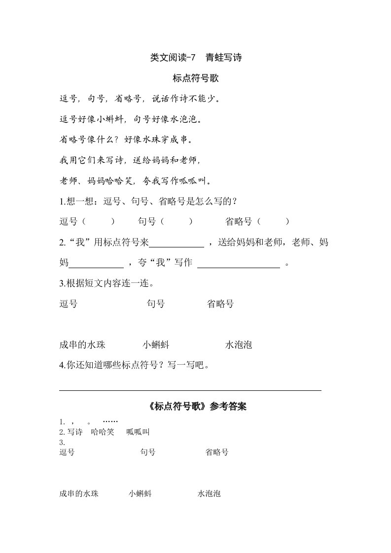 一年级语文上册类文阅读-7青蛙写诗(部编版)_共2页