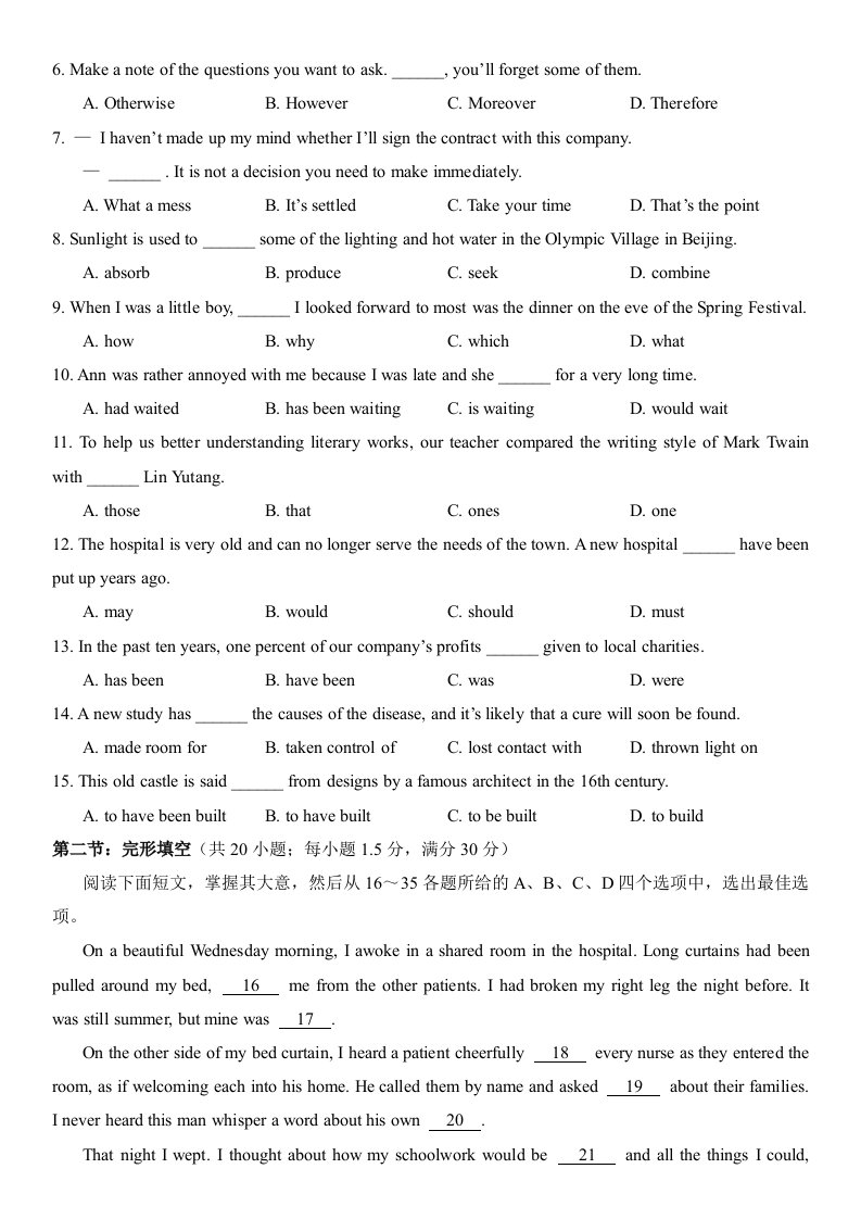 当前位置: 首页高中资源高考真题正文 2022年高考英语试卷(天津)(第一次)(空白卷)_共12页 高考真题 2 周前 0 0 10 以上为部分内容预览,如需源文档请登录您的会员账号进行下载! 声明:本站所有文章,如无特殊说明或标注,均为本站原创发布。任何个人或组织,在未征得本站同意时,禁止复制、盗用、采集、发布本站内容到任何网站、书籍等各类媒体平台。如若本站内容侵犯了原著者的合法权益,可联系我们进行处理。 尚学资源永久会员 打赏 收藏 海报 链接