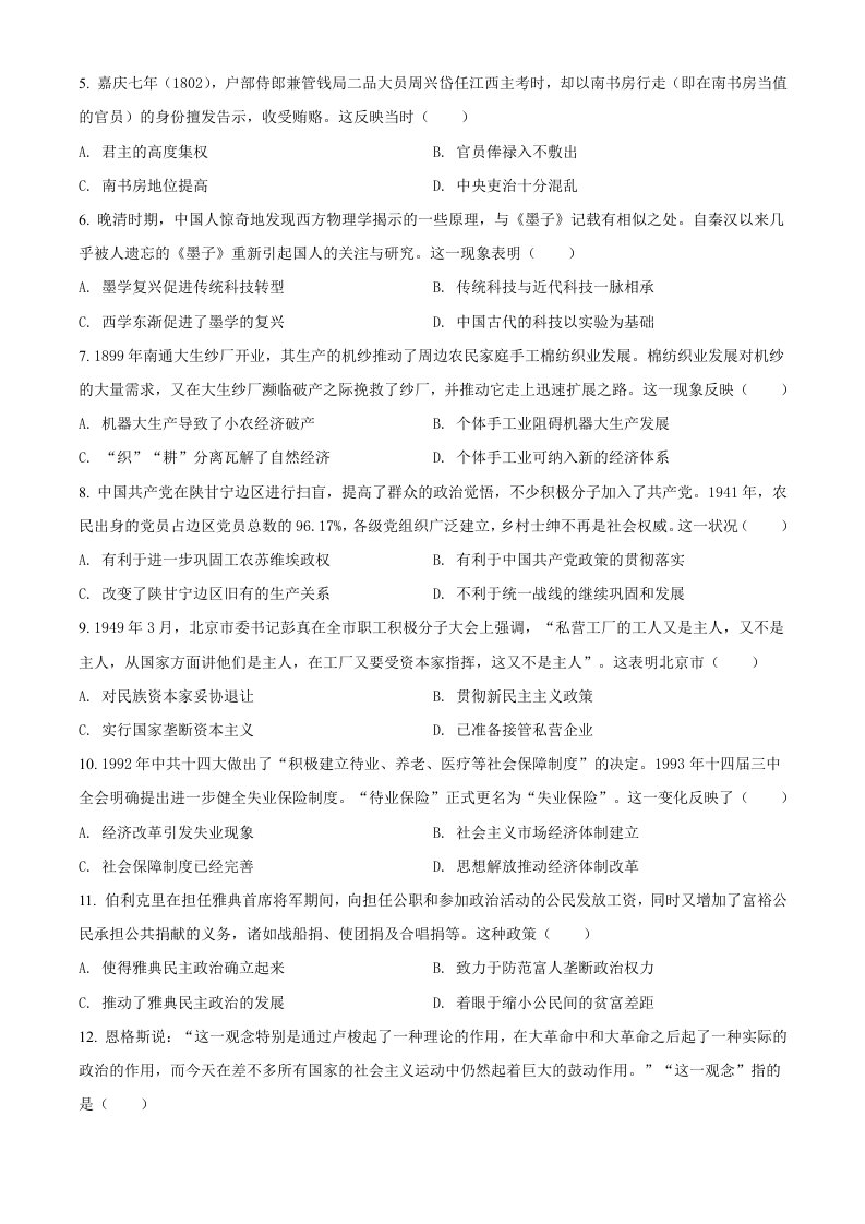 2022年高考历史试卷(湖南)(空白卷)_共7页