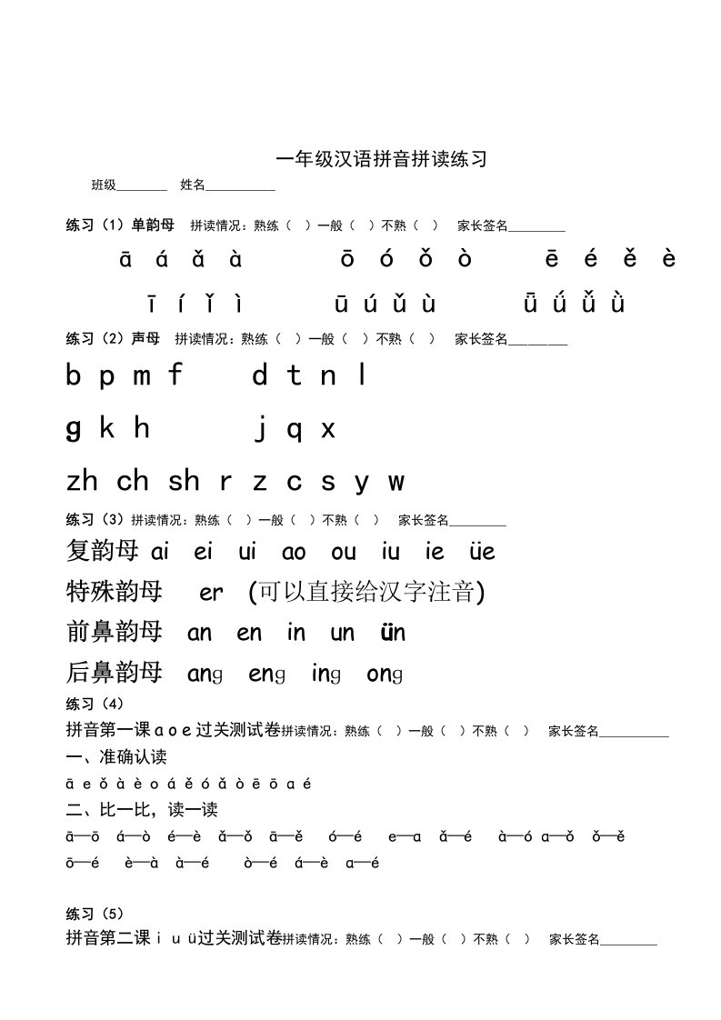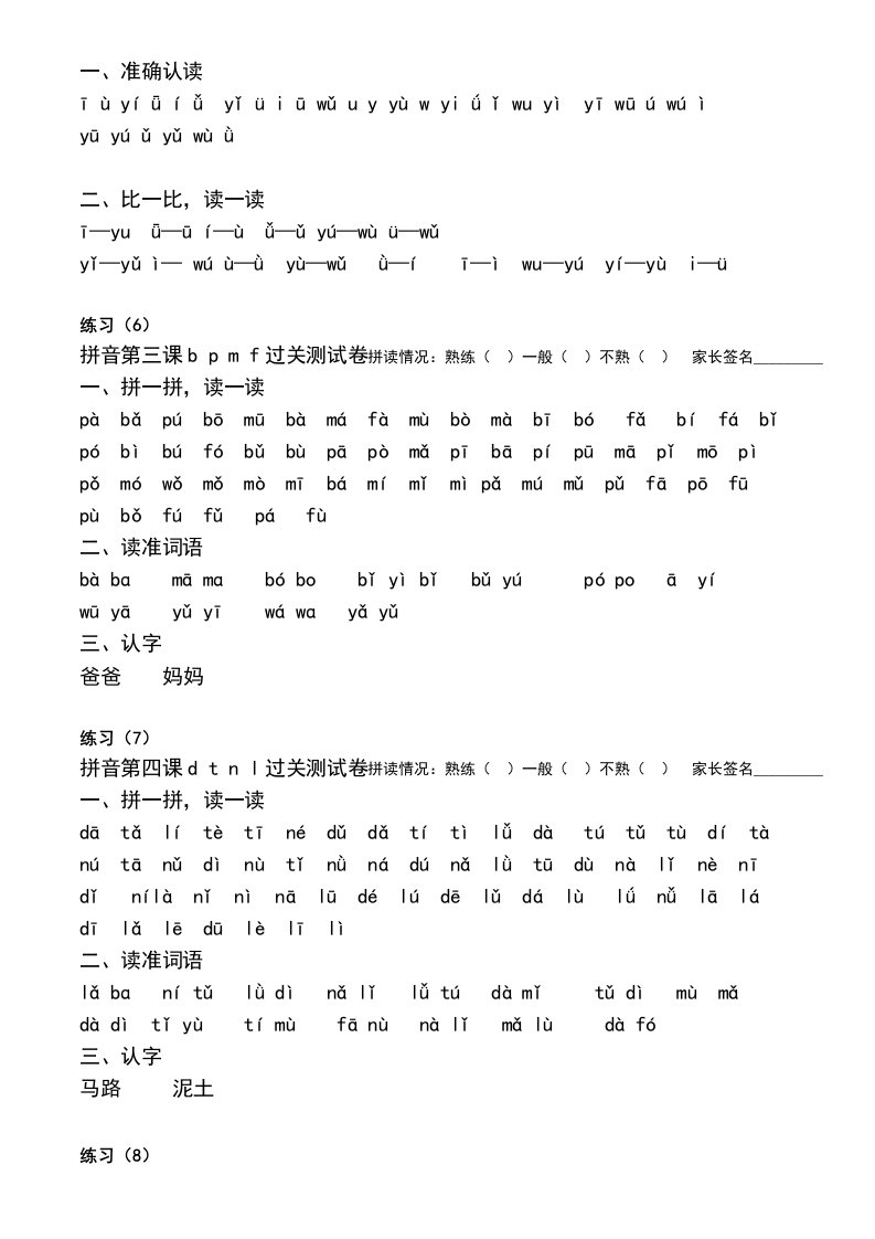 一年级语文上册汉语拼音拼读练习题(部编版)_共8页