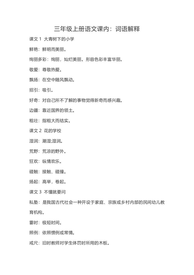 当前位置: 首页小学资源小学三年级正文 三上语文-语文:课内的词语解释_共12页 小学三年级 2 周前 0 0 10 以上为部分内容预览,如需源文档请登录您的会员账号进行下载! 声明:本站所有文章,如无特殊说明或标注,均为本站原创发布。任何个人或组织,在未征得本站同意时,禁止复制、盗用、采集、发布本站内容到任何网站、书籍等各类媒体平台。如若本站内容侵犯了原著者的合法权益,可联系我们进行处理。 尚学资源永久会员 打赏 收藏 海报 链接