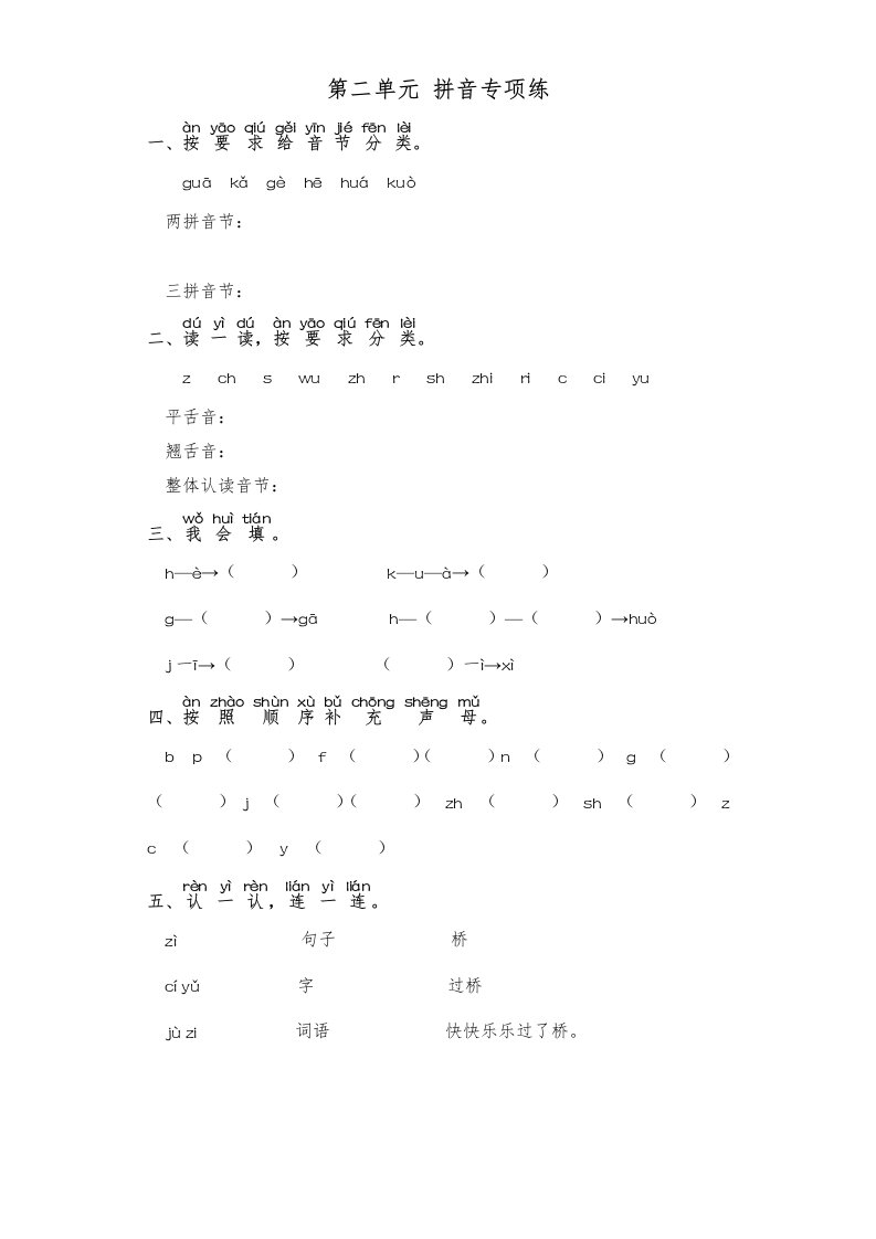 一年级语文上册第2单元-字词专项练习1-部编(部编版)_共2页