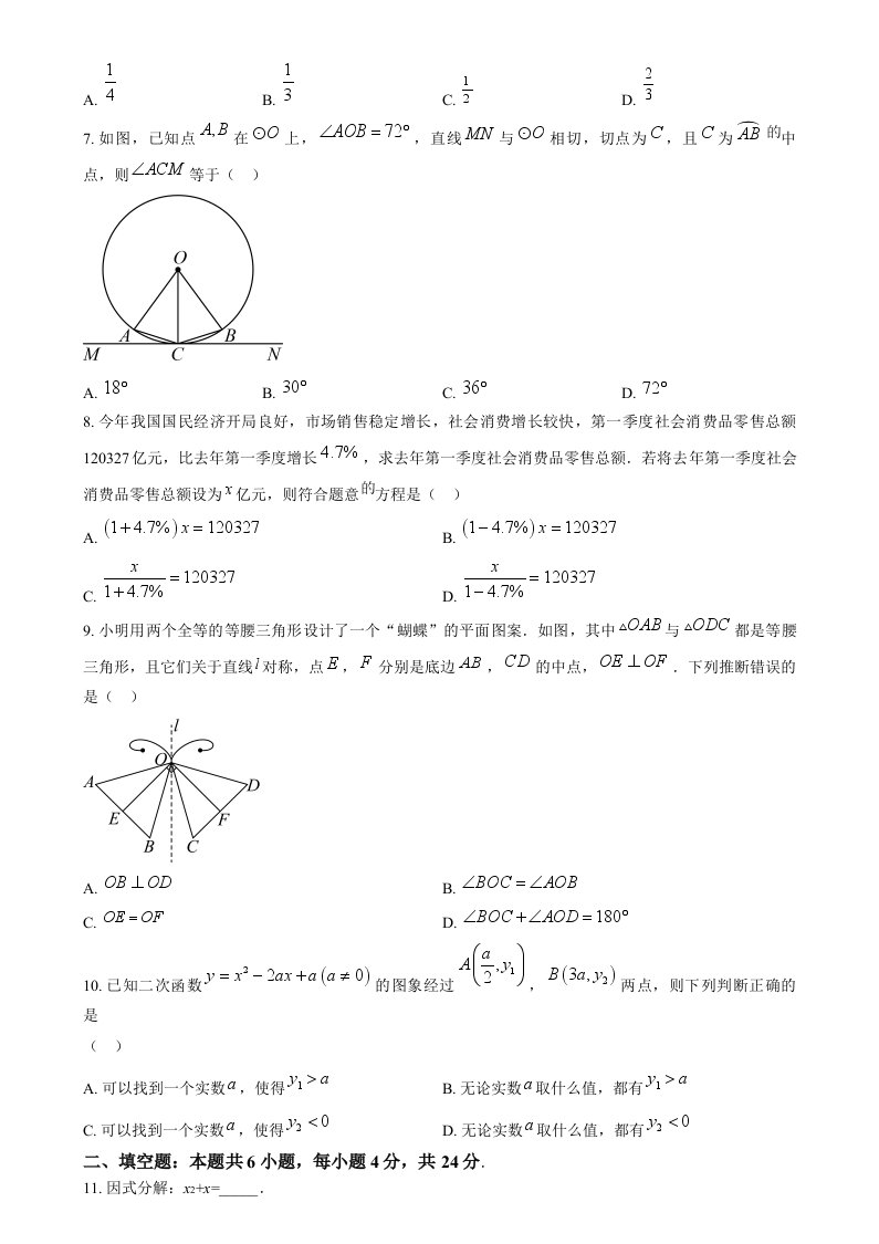 当前位置: 首页初中资源中考真题正文 2024年福建省中考真题数学试题(空白卷)_共7页 中考真题 2 周前 0 0 5 以上为部分内容预览,如需源文档请登录您的会员账号进行下载! 声明:本站所有文章,如无特殊说明或标注,均为本站原创发布。任何个人或组织,在未征得本站同意时,禁止复制、盗用、采集、发布本站内容到任何网站、书籍等各类媒体平台。如若本站内容侵犯了原著者的合法权益,可联系我们进行处理。 尚学资源永久会员 打赏 收藏 海报 链接