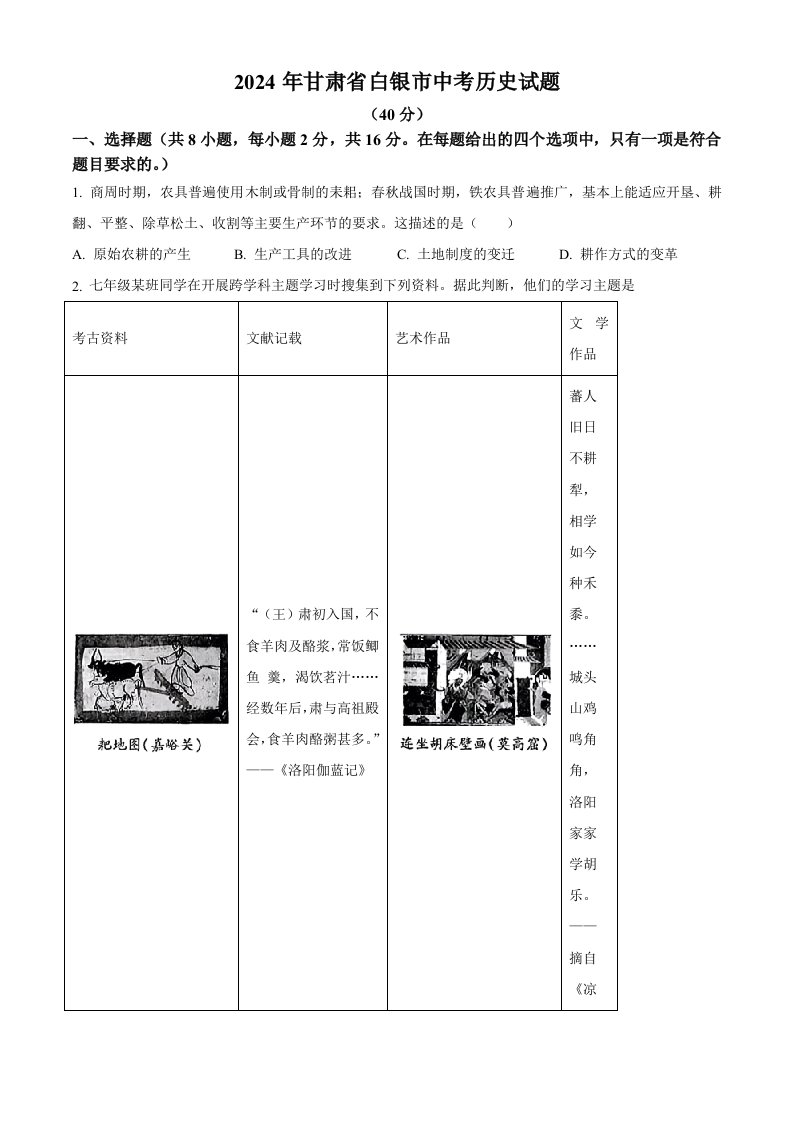 当前位置: 首页初中资源中考真题正文 2024年甘肃省白银市中考历史试题(空白卷)_共4页 中考真题 2 周前 0 0 5 以上为部分内容预览,如需源文档请登录您的会员账号进行下载! 声明:本站所有文章,如无特殊说明或标注,均为本站原创发布。任何个人或组织,在未征得本站同意时,禁止复制、盗用、采集、发布本站内容到任何网站、书籍等各类媒体平台。如若本站内容侵犯了原著者的合法权益,可联系我们进行处理。 尚学资源永久会员 打赏 收藏 海报 链接