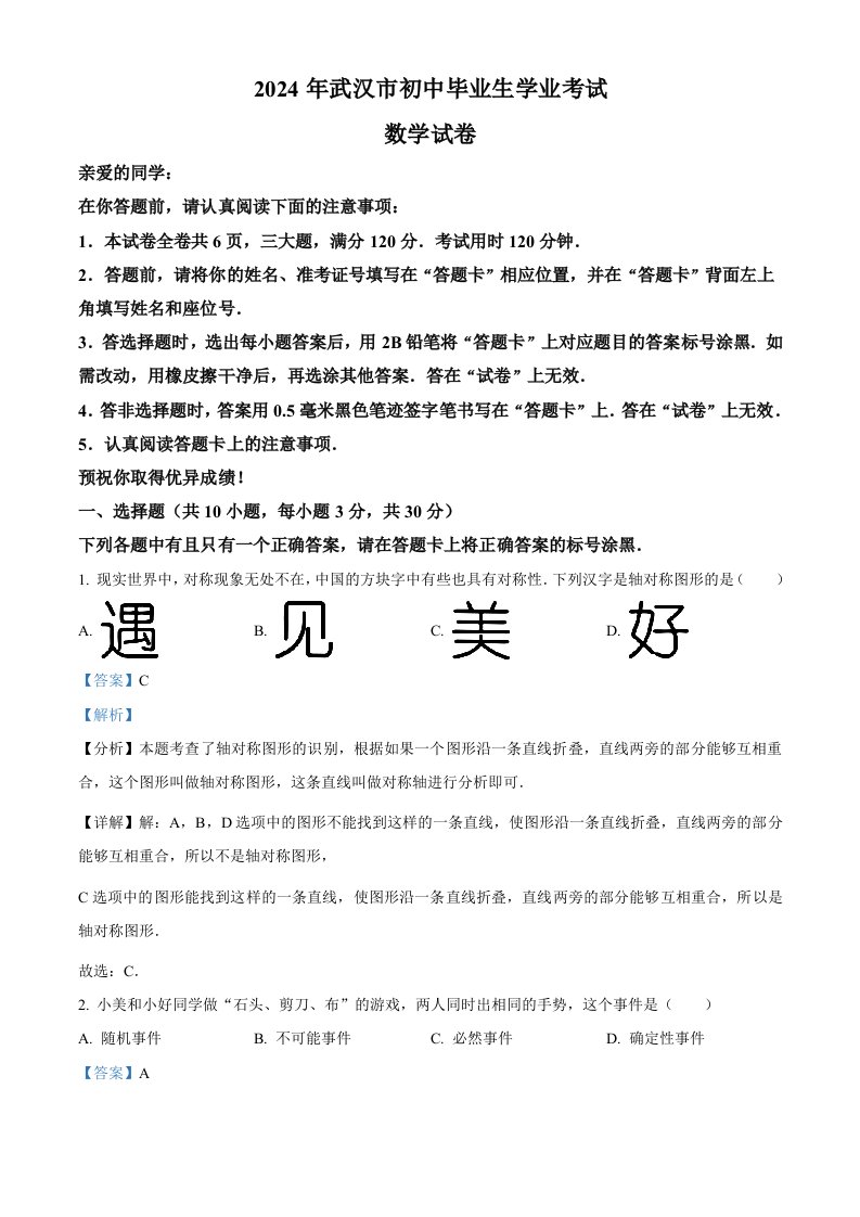 当前位置: 首页初中资源中考真题正文 2024年湖北省武汉市中考数学试题(含答案)_共28页 中考真题 2 周前 0 0 15 以上为部分内容预览,如需源文档请登录您的会员账号进行下载! 声明:本站所有文章,如无特殊说明或标注,均为本站原创发布。任何个人或组织,在未征得本站同意时,禁止复制、盗用、采集、发布本站内容到任何网站、书籍等各类媒体平台。如若本站内容侵犯了原著者的合法权益,可联系我们进行处理。 尚学资源永久会员 打赏 收藏 海报 链接