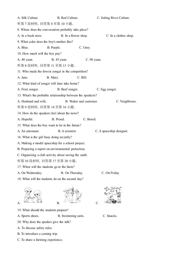 当前位置: 首页初中资源中考真题正文 2024年四川省南充市中考英语真题(含答案)_共19页 中考真题 2 周前 0 0 10 以上为部分内容预览,如需源文档请登录您的会员账号进行下载! 声明:本站所有文章,如无特殊说明或标注,均为本站原创发布。任何个人或组织,在未征得本站同意时,禁止复制、盗用、采集、发布本站内容到任何网站、书籍等各类媒体平台。如若本站内容侵犯了原著者的合法权益,可联系我们进行处理。 尚学资源永久会员 打赏 收藏 海报 链接