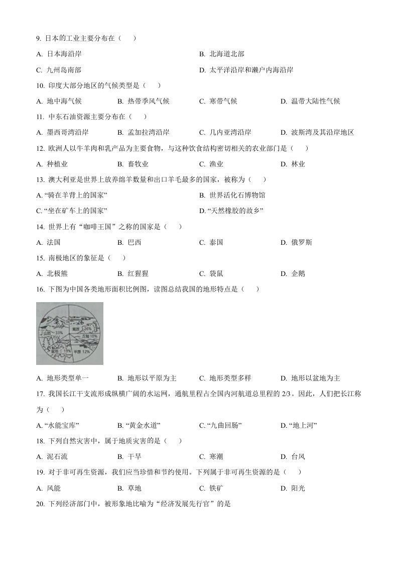 当前位置: 首页初中资源中考真题正文 2024年黑龙江省绥化市中考地理试题(空白卷)_共7页 中考真题 2 周前 0 0 5 以上为部分内容预览,如需源文档请登录您的会员账号进行下载! 声明:本站所有文章,如无特殊说明或标注,均为本站原创发布。任何个人或组织,在未征得本站同意时,禁止复制、盗用、采集、发布本站内容到任何网站、书籍等各类媒体平台。如若本站内容侵犯了原著者的合法权益,可联系我们进行处理。 尚学资源永久会员 打赏 收藏 海报 链接