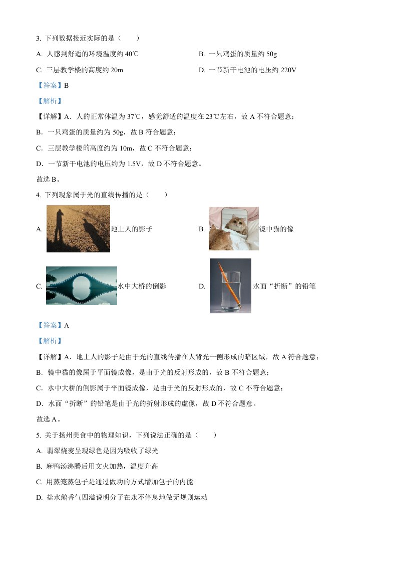 2024年江苏省扬州市中考物理真题(含答案)_共20页